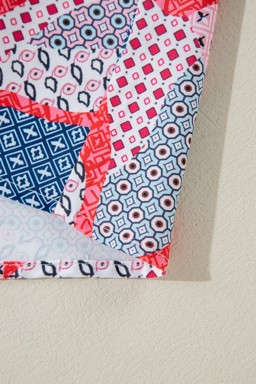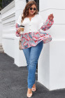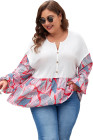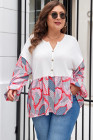 Blusa con botones texturizados y patchwork estampado talla grande albaricoque
