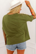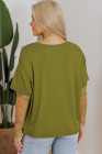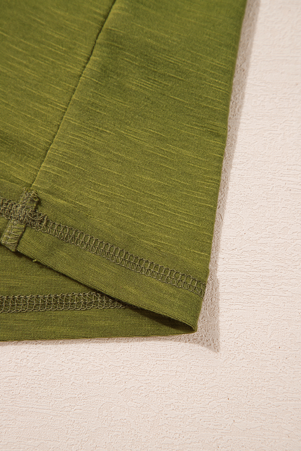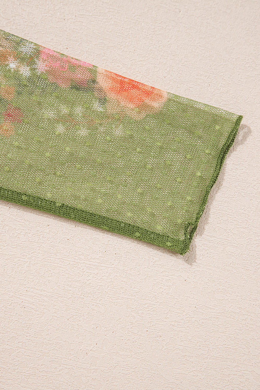 Camiseta de dos piezas con estampado floral de retazos de manga larga y efecto verde helecho