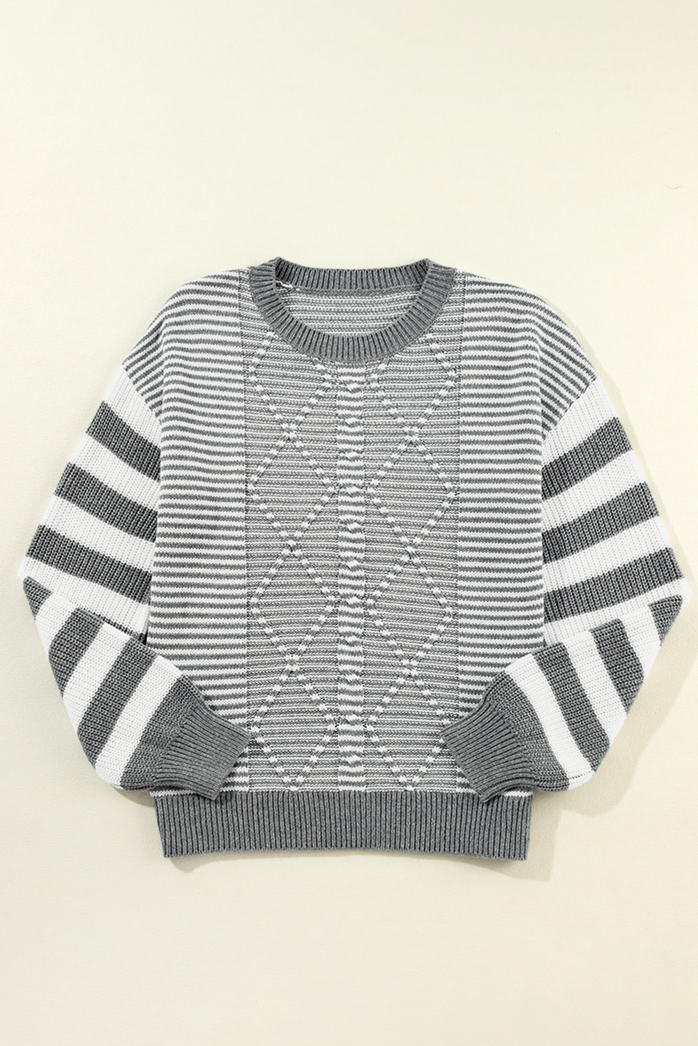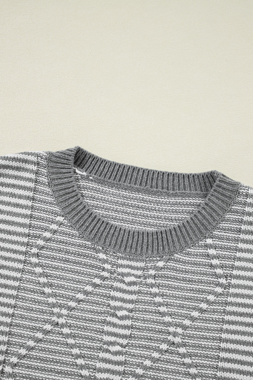 Jersey de hombros caídos con textura geométrica de rayas grises