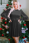 Vestido negro de terciopelo con corpiño fruncido y cuello con volantes