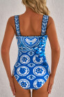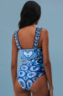 Traje de baño de una pieza con tirantes anchos y estampado de mosaicos azules de Ricrac