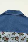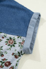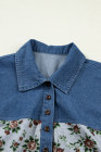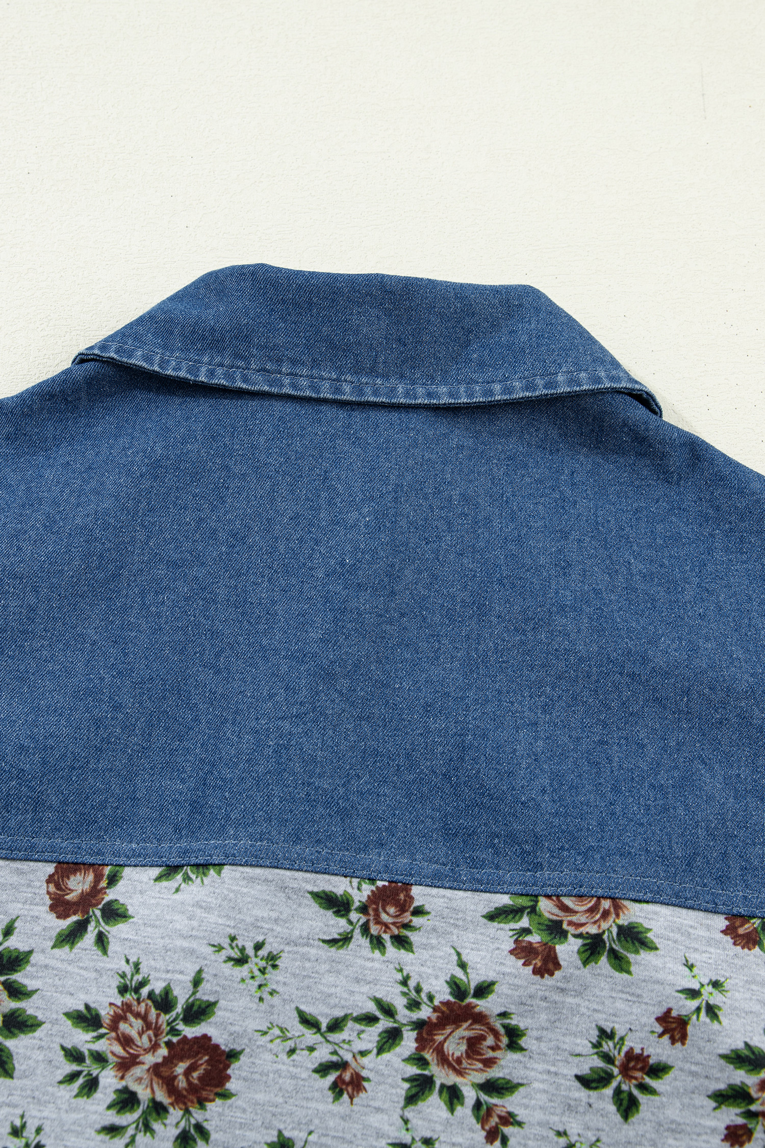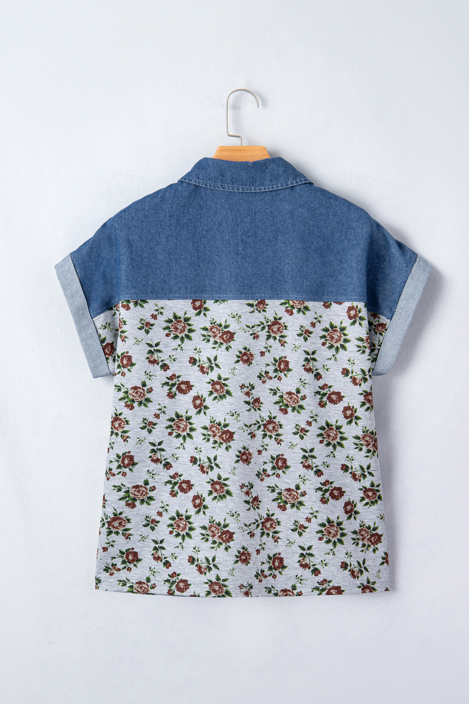 Camiseta de cuello polo abotonada con parches de mezclilla y estampado floral retro gris