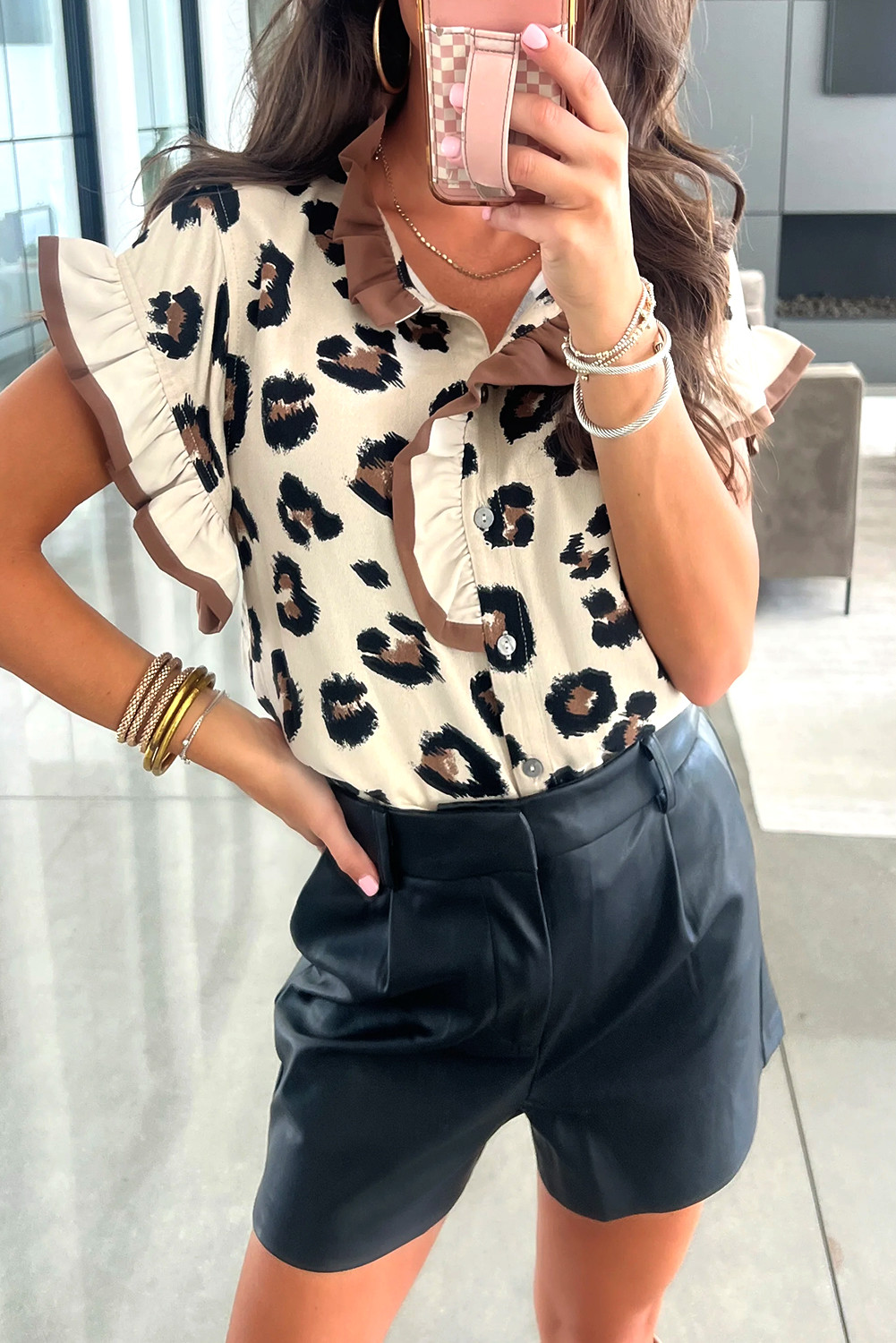 Blusa de verano con mangas con volantes y estampado de leopardo