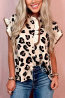 Blusa de verano con mangas con volantes y estampado de leopardo color caqui