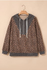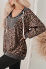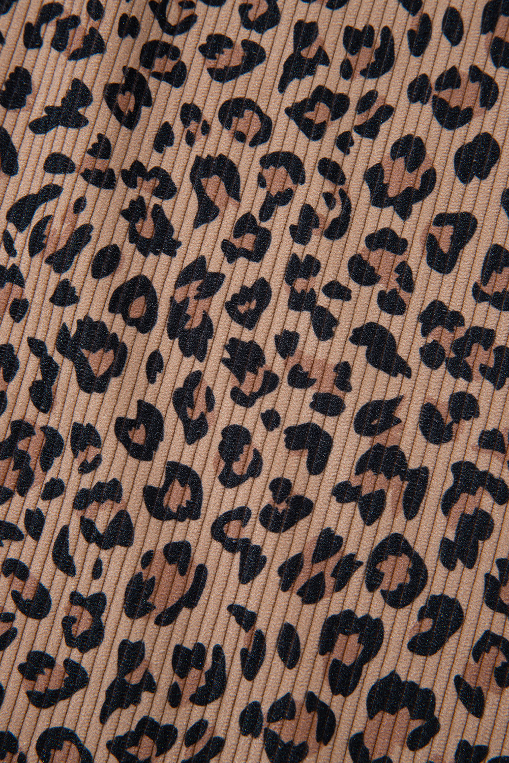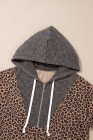 Sudadera con capucha, cremallera y cuello en contraste con estampado de leopardo acanalado en color caqui