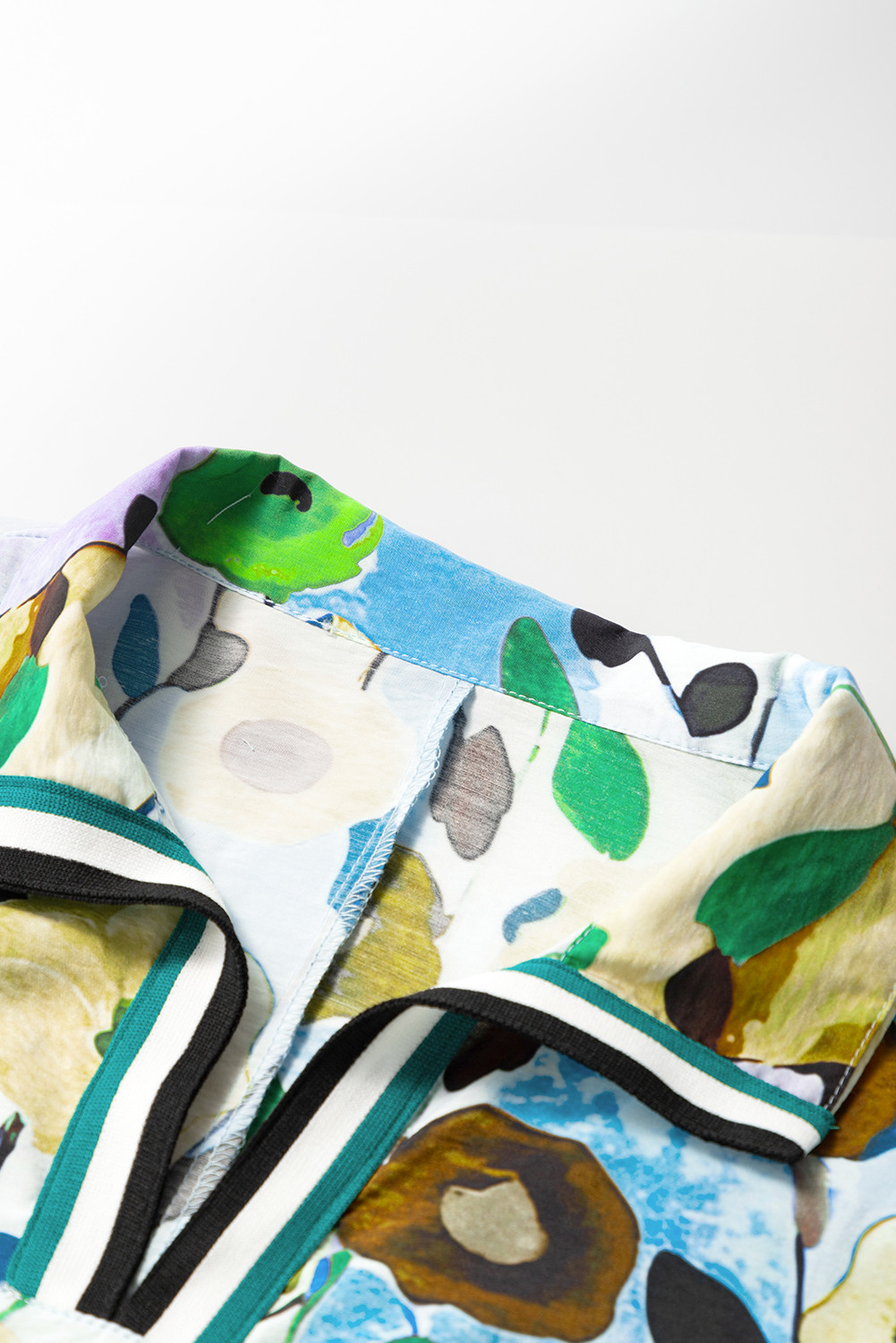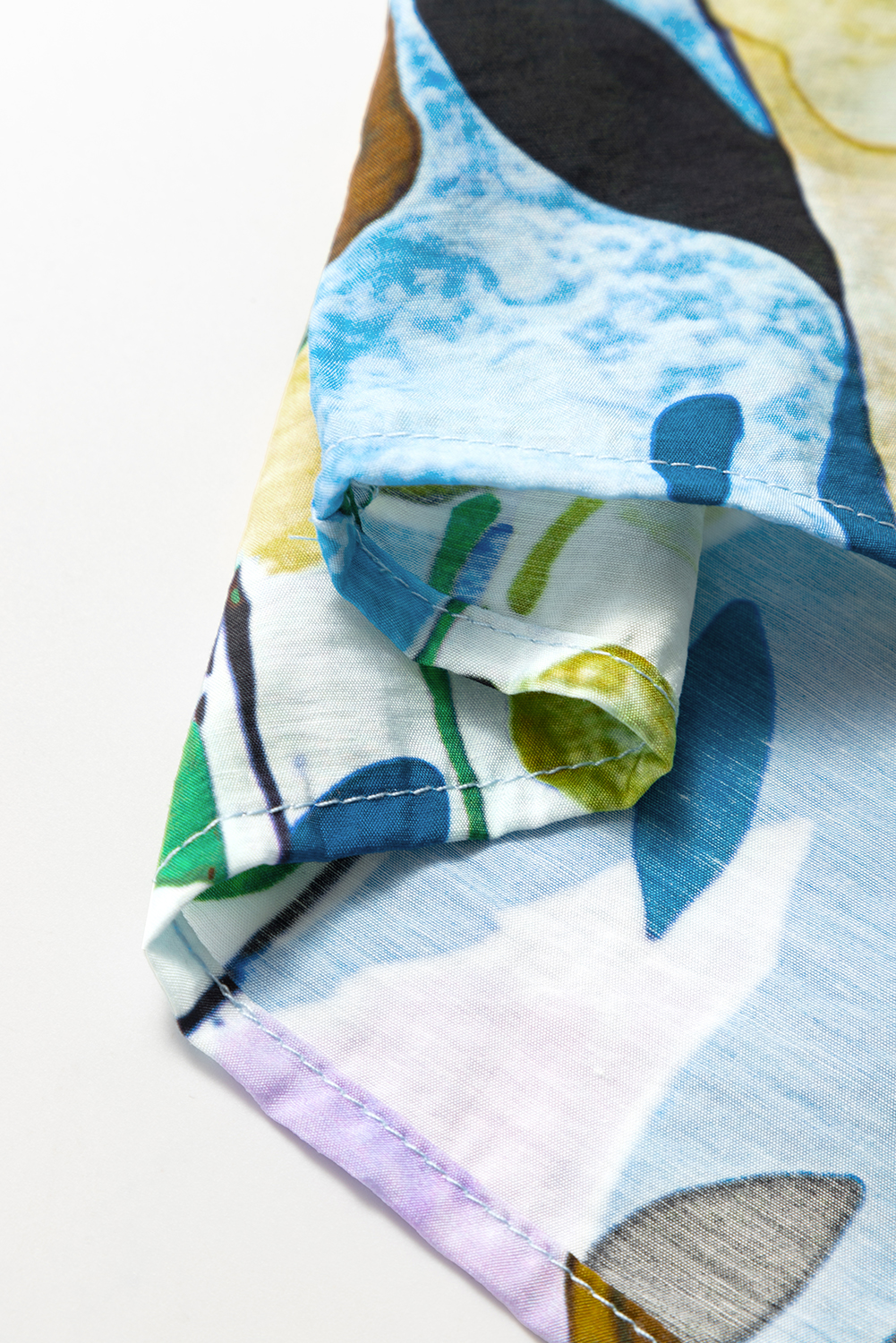 Blusa de manga corta con escote en V y abertura con estampado floral azul claro