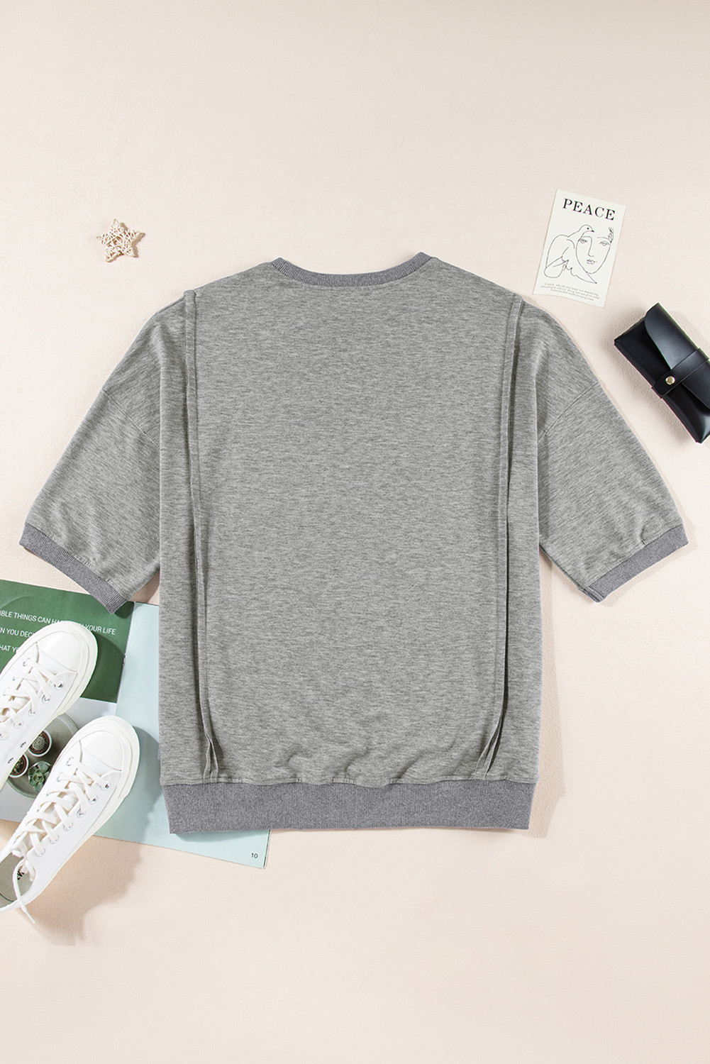 Camiseta holgada con abertura y bolsillo en el pecho con costura expuesta gris claro