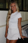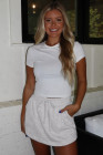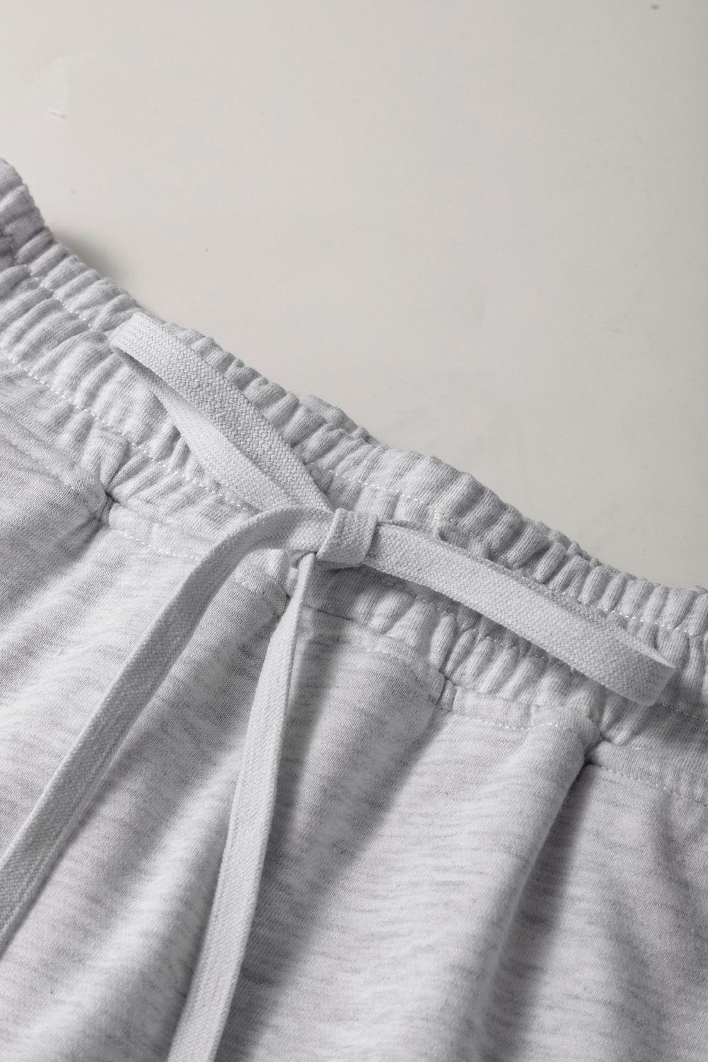 Minifalda pantalón de rizo francés gris claro con cintura elástica y bolsillos