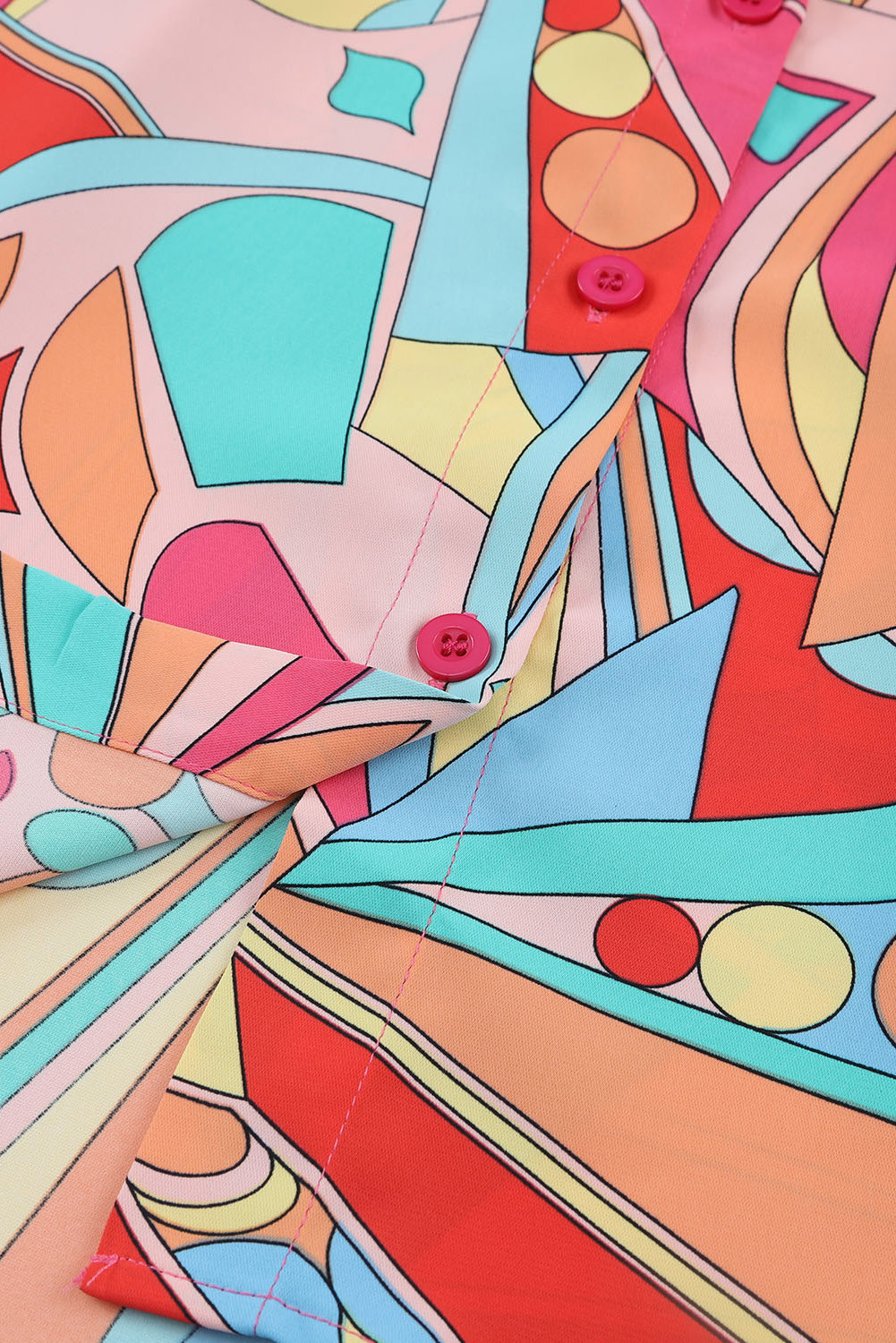 Camisa holgada de manga abullonada con estampado de geometría abstracta multicolor