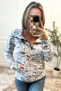 Sudadera con cuello y cremallera, bolsillo canguro y estampado de camuflaje multicolor