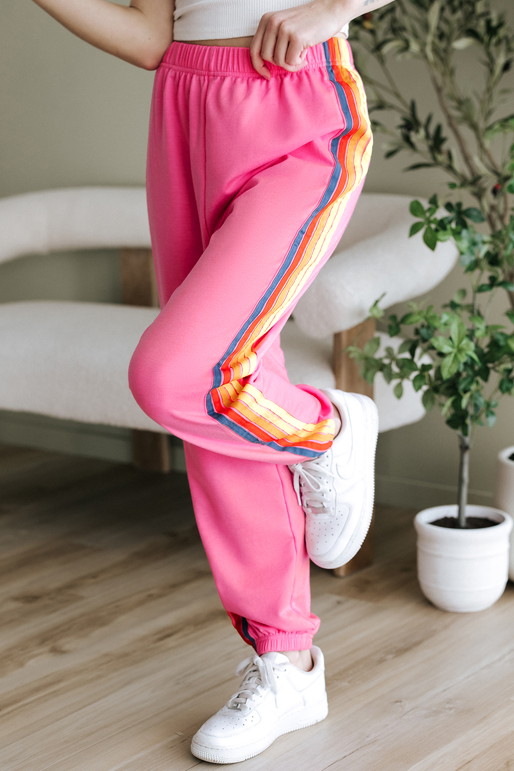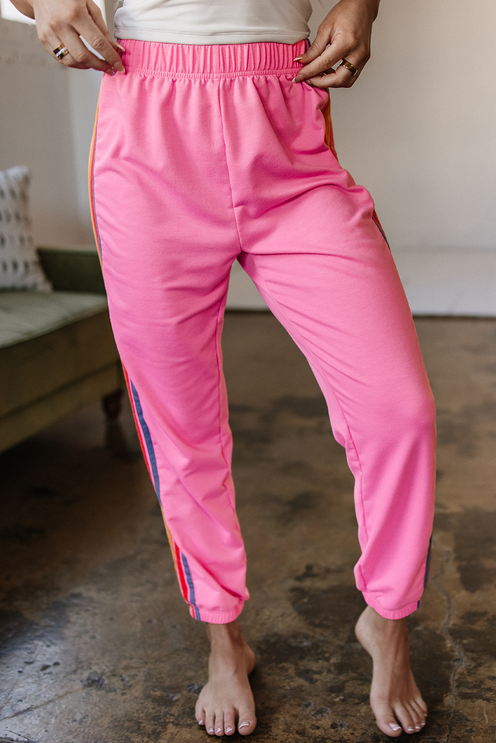Pantalones deportivos de cintura alta con arcoíris en color rosa
