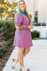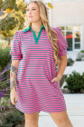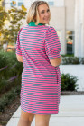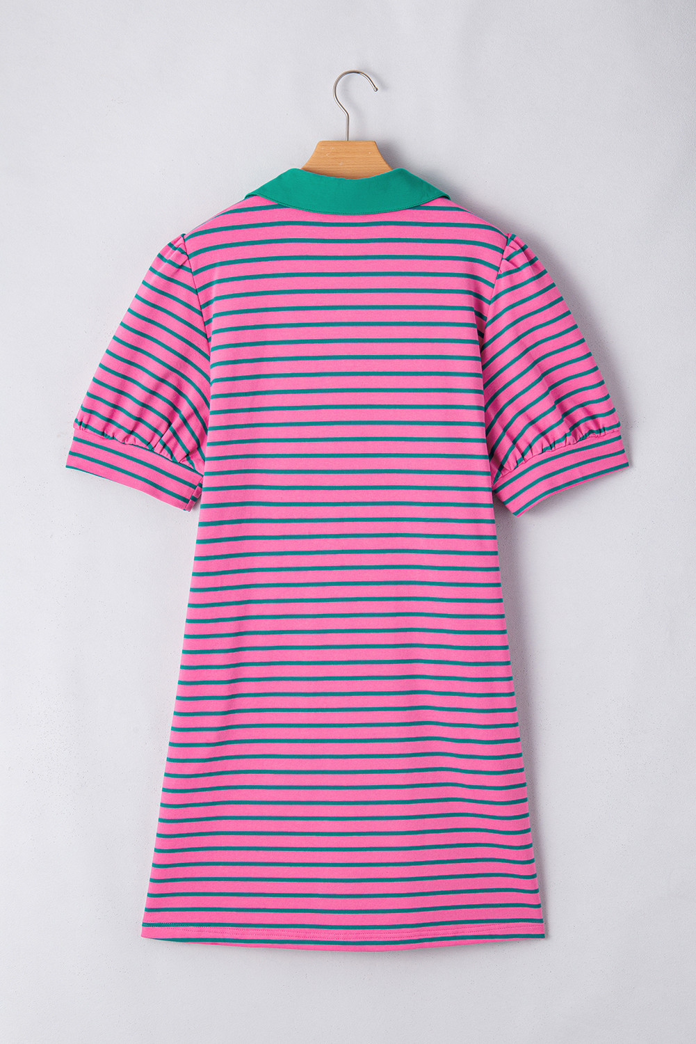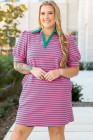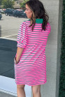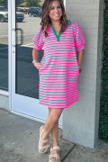 Vestido camisero con cuello en V, mangas abullonadas y bolsillos con rayas rosas