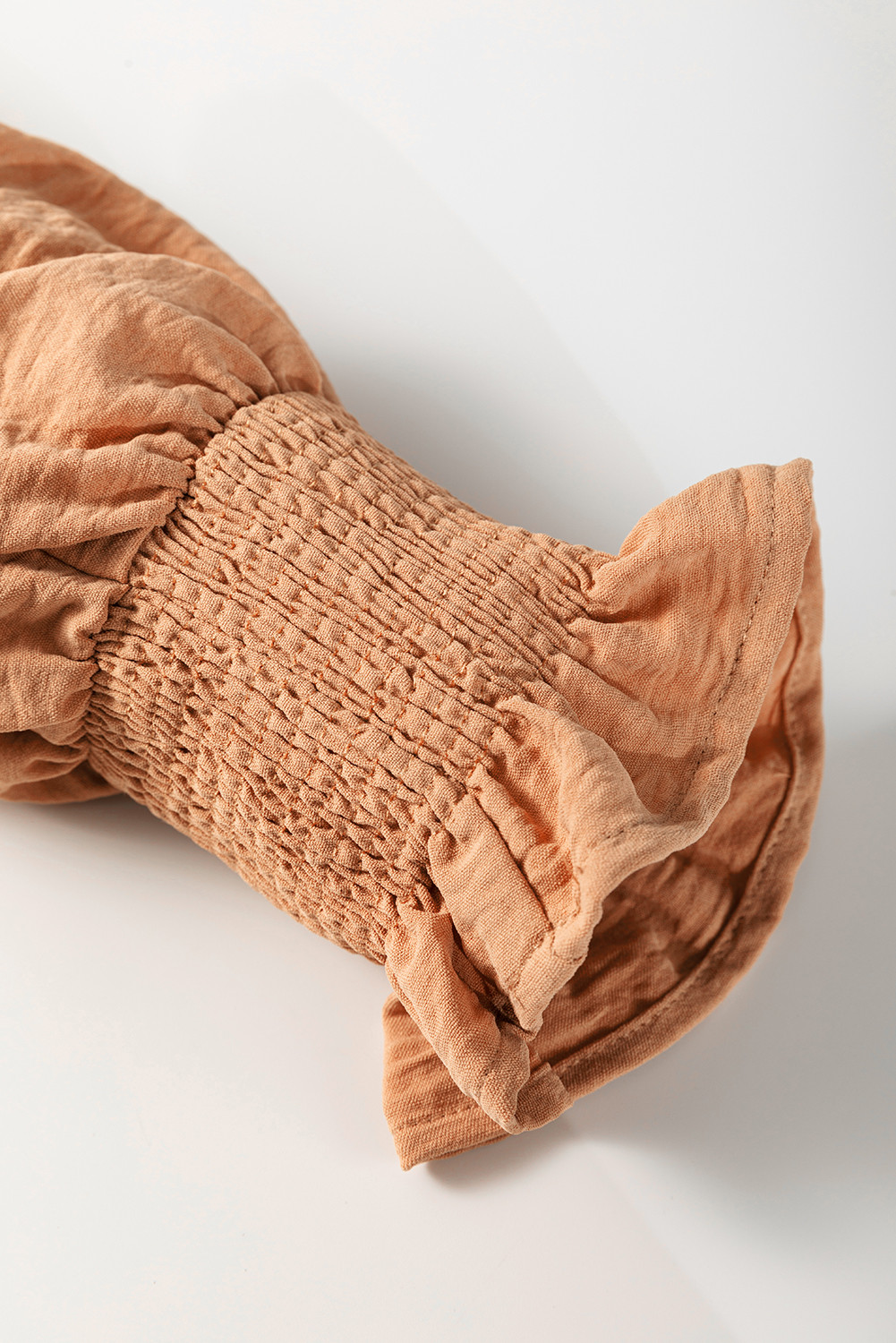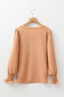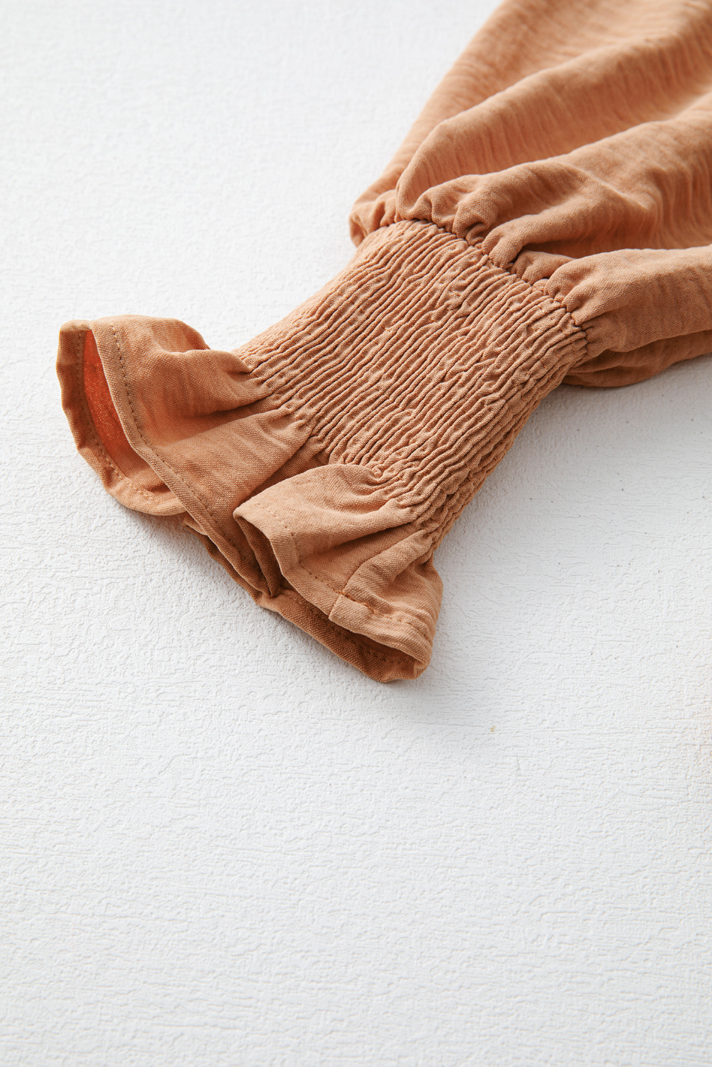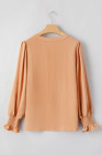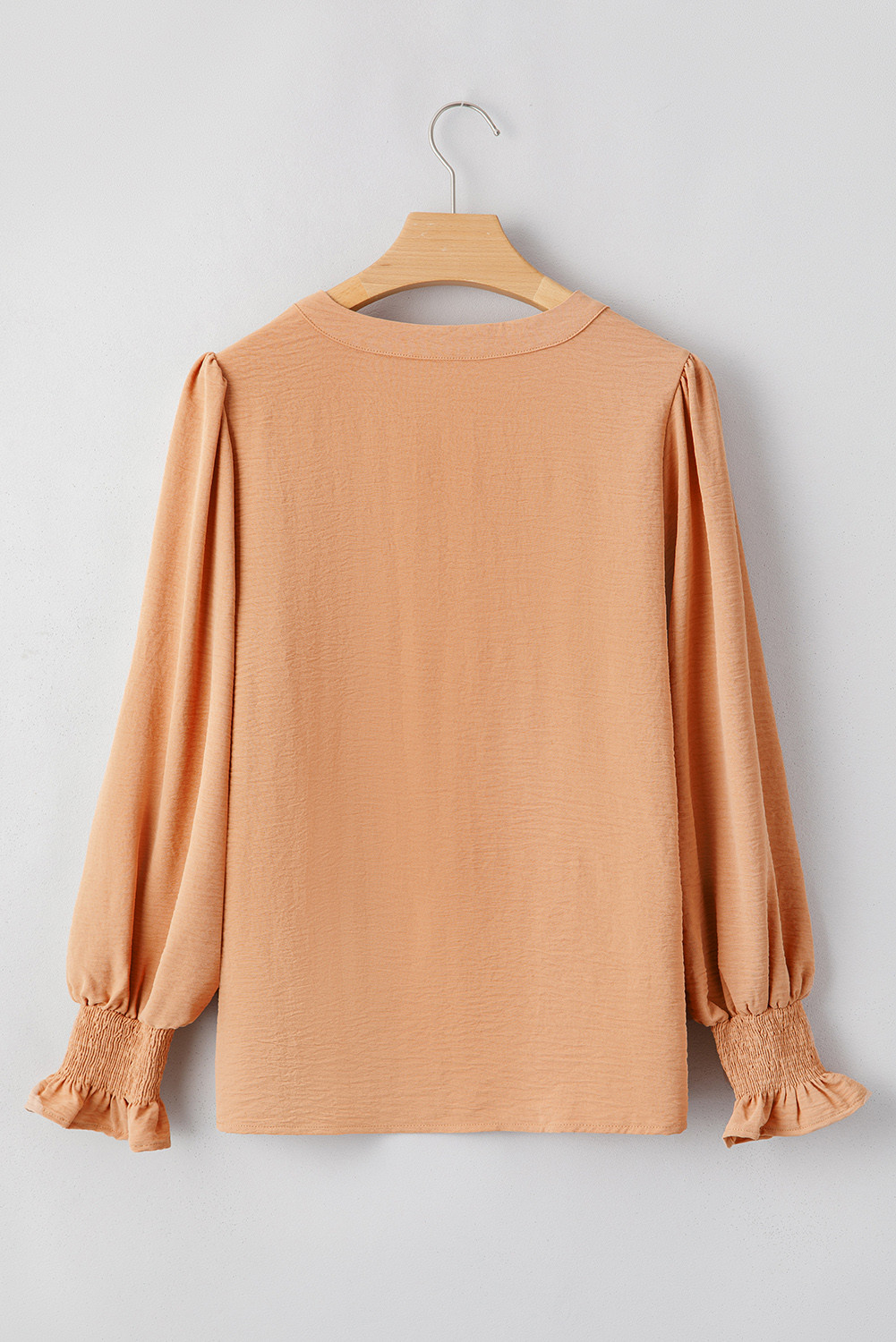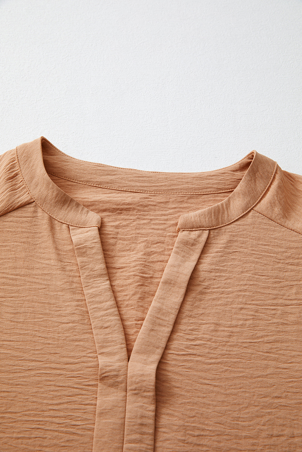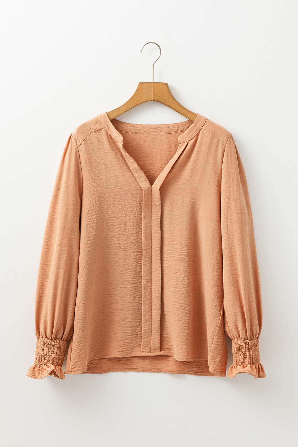 Blusa de escote en V con puños fruncidos y muesca en color amarillo paja